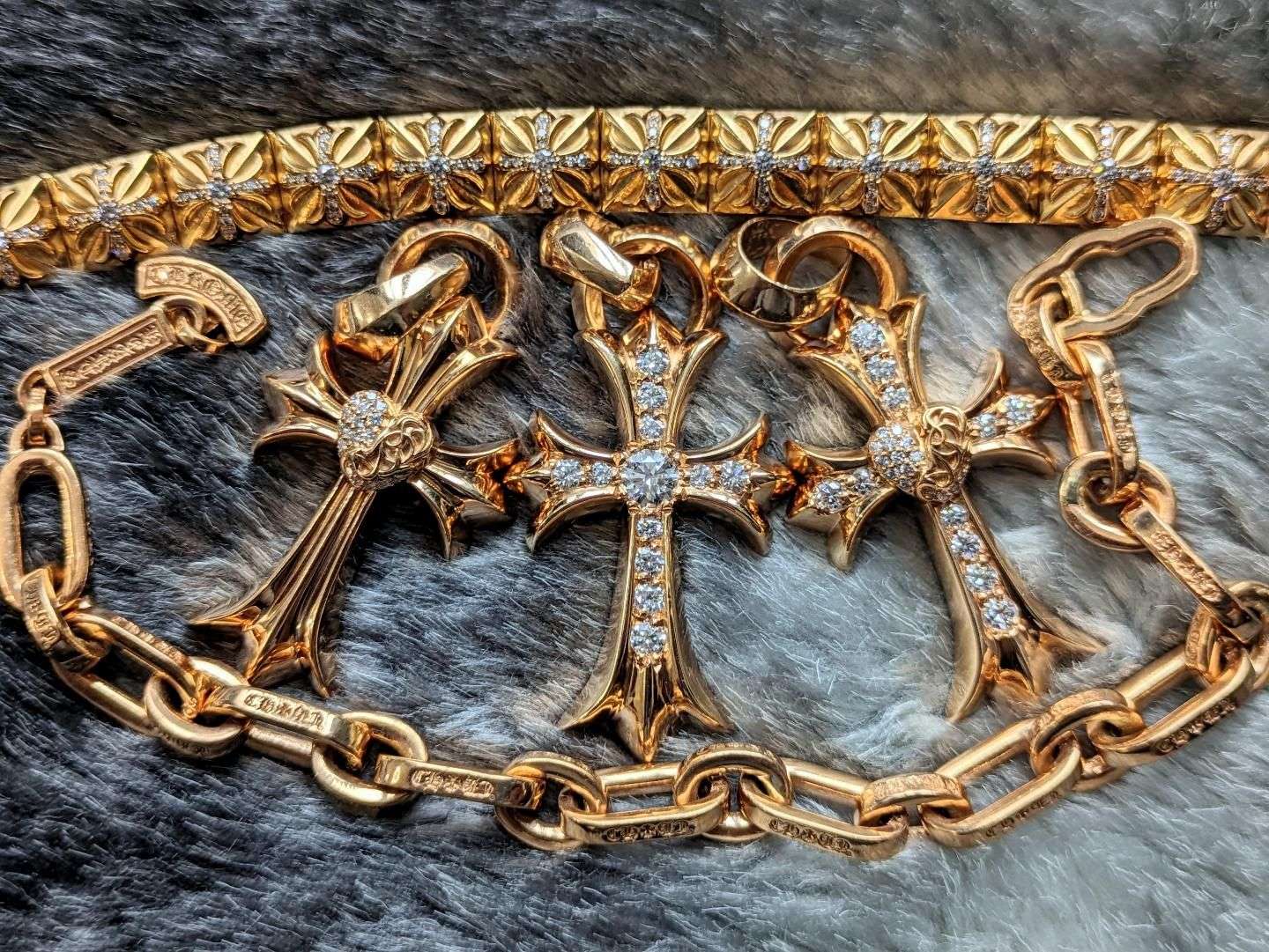 クロムハーツネックレスの価格は、素材やデザインによって異なります。シルバー製のシンプルなネックレスであれば、数万円で購入できます。ゴールド製のゴージャスなネックレスになると、数十万円から数百万円の価格帯になります。